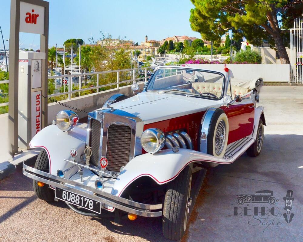 Plongez dans l’atmosphère du véritable chic et de l’élégance avec notre cabriolet rétro Beauford 1967. Cette voiture est l’incarnation du classicisme et du style, créée pour offrir des émotions fortes et des souvenirs impérissables. Sa carrosserie blanche ornée de détails rouges raffinés, ses éléments chromés et ses lignes vintage en font une véritable star des routes de la Côte d’Azur.